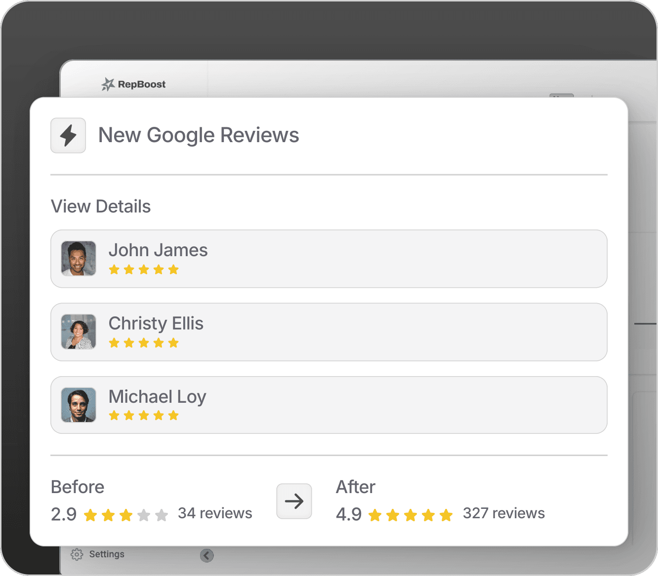 Automatic Google review requests sent to happy customers to boost ratings and visibility.